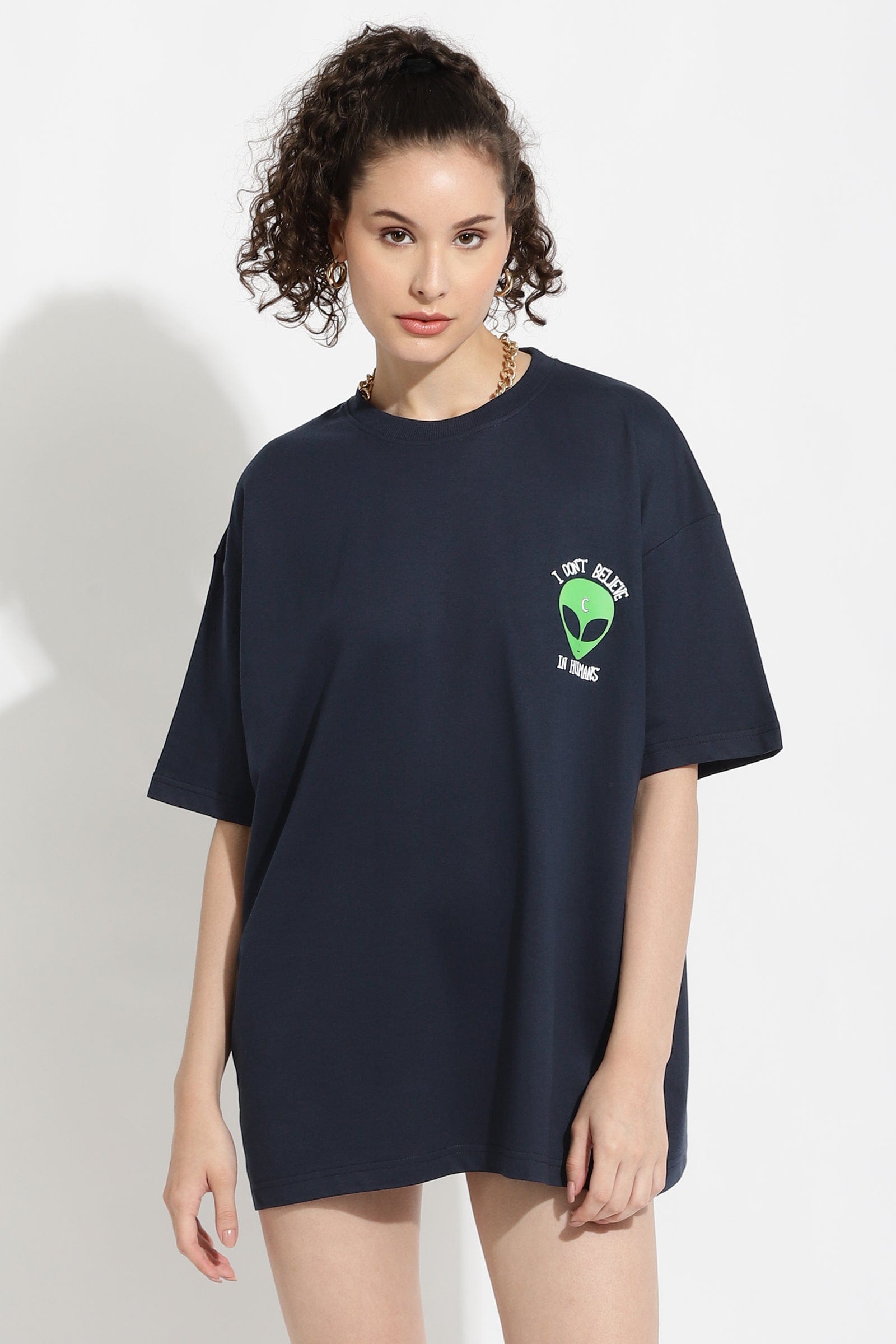 Alien Astros Navy Blue Oversized Unisex T-Shirt By Purple Mango