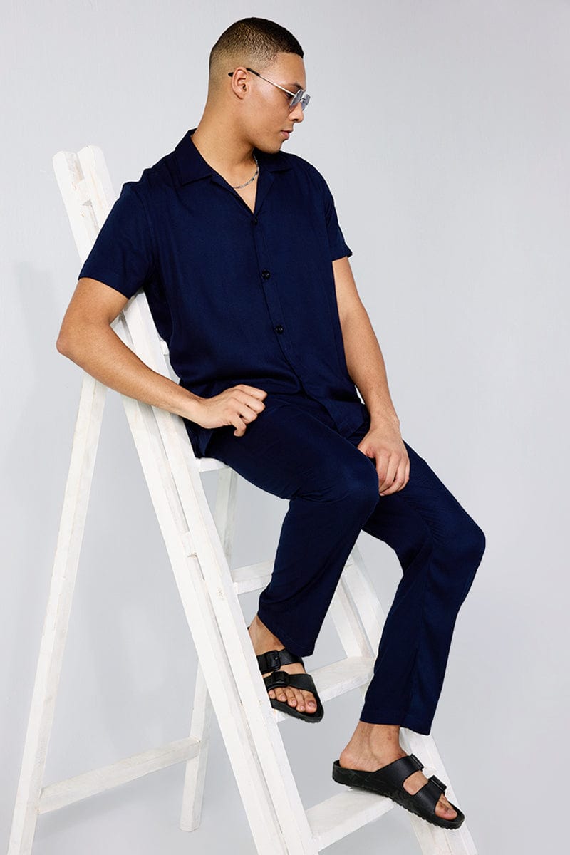 Dark Blue Half Sleeve Co-Ords Set By Purple Mango