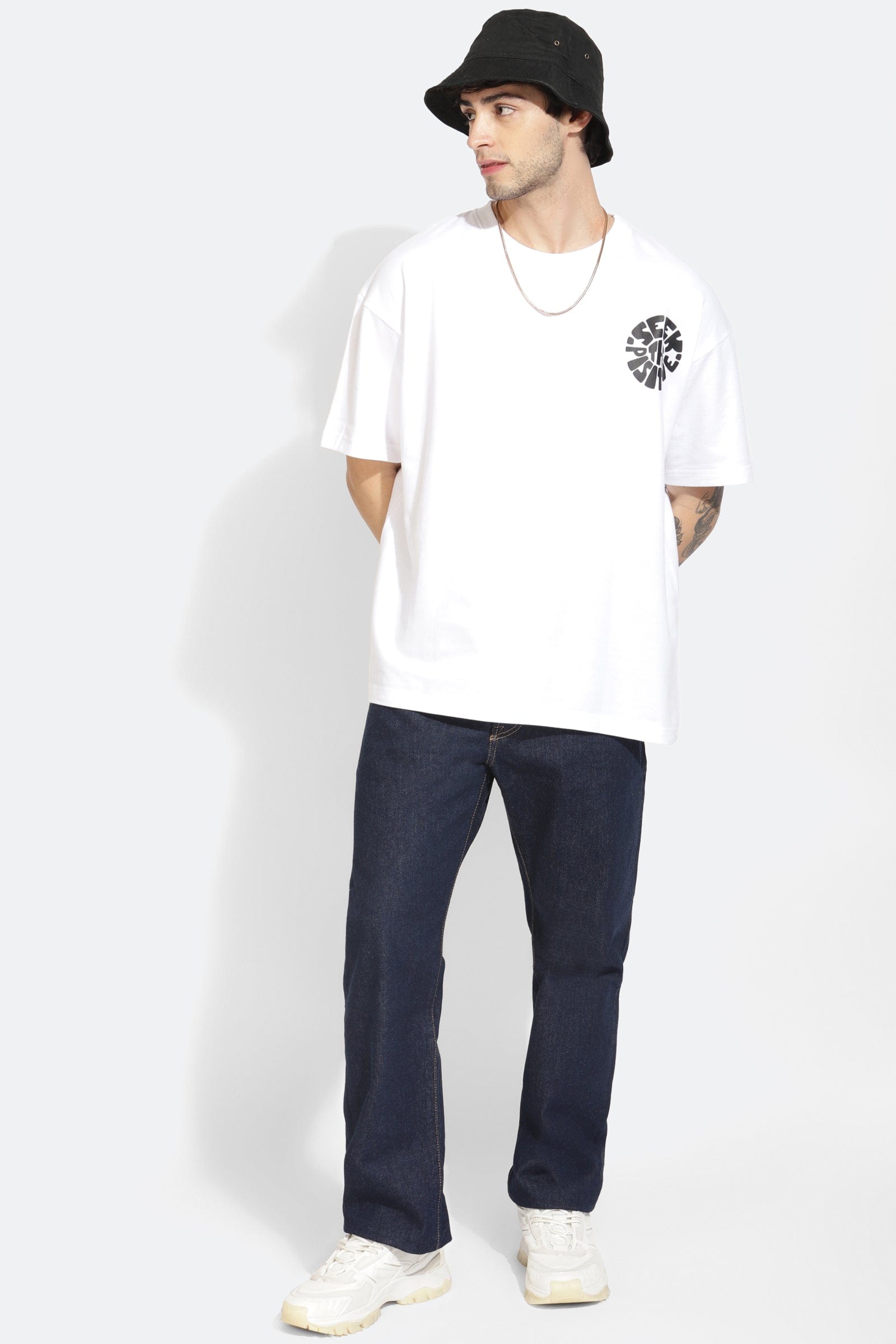 Seek The Positive White Oversized Unisex T-Shirt By Purple Mango