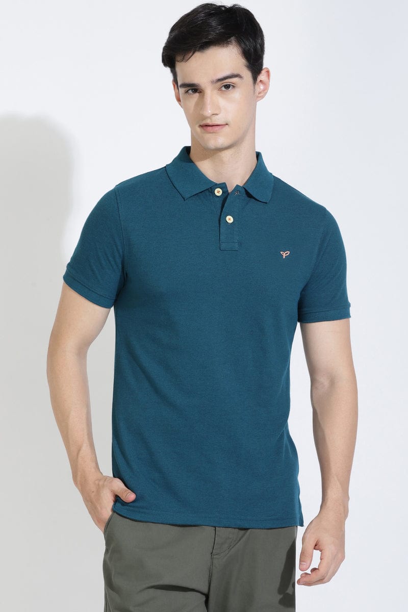 Teal Green Polo T-shirt By Purple Mango